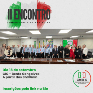 O Comites-RS reunirá a comunidade ítalo-gaúcha para apresentar o calendário comemorativo preliminar dos 150 anos da imigração italiana no Estado, a serem comemorados em 2025,